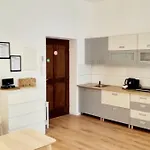 Dit appartement heeft koffie- en theevoorzieningen en een kitchenette met een koelkast en een kookplaat.